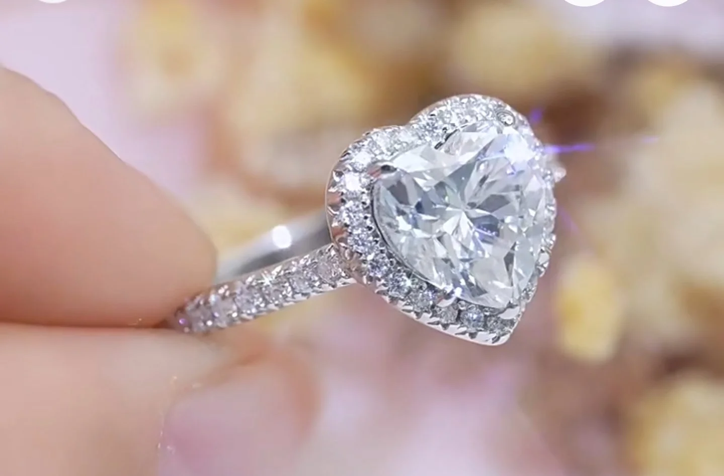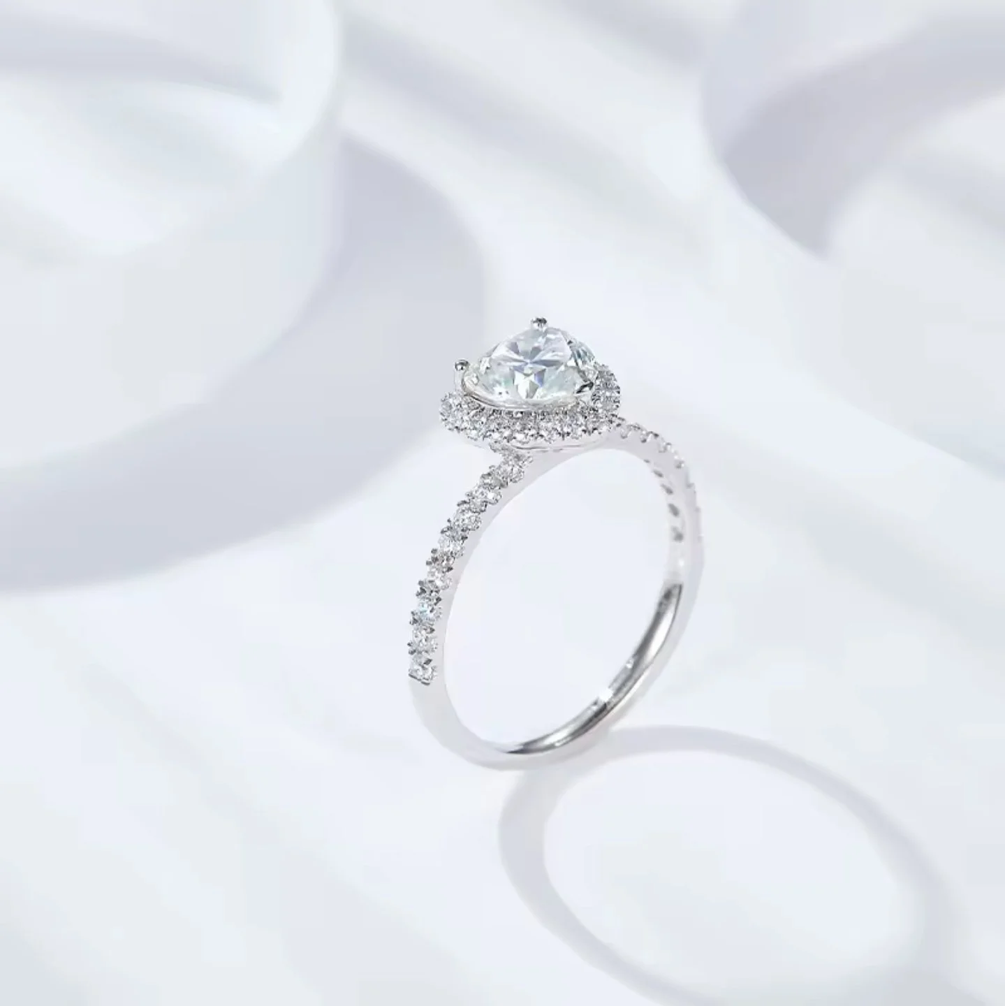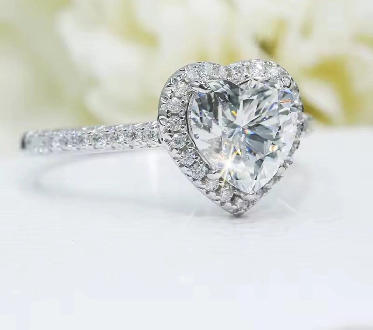 Heart Cut Moissanite Halo Ring – 1.44 Total Carats